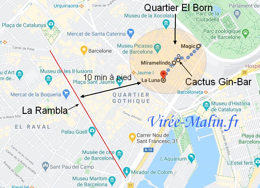 - Cliquez ici pour agrandir cette GoogleMap – Où sortir dans le quartier El Born de Barcelone :