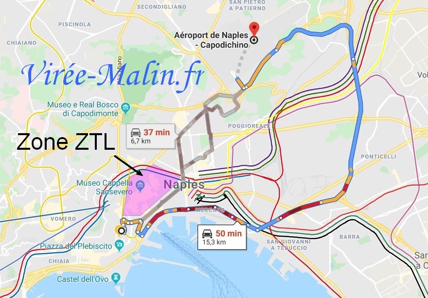 - Cliquez ici pour agrandir cette GoogleMap – Rejoindre Parking à Naples depuis l’aéroport sans passer par la ZTL :