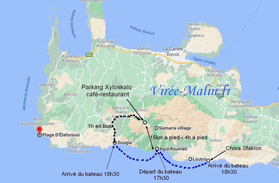 - Cliquez ici pour agrandir cette GoogleMap – Transport pour faire les Gorges de Samaria :