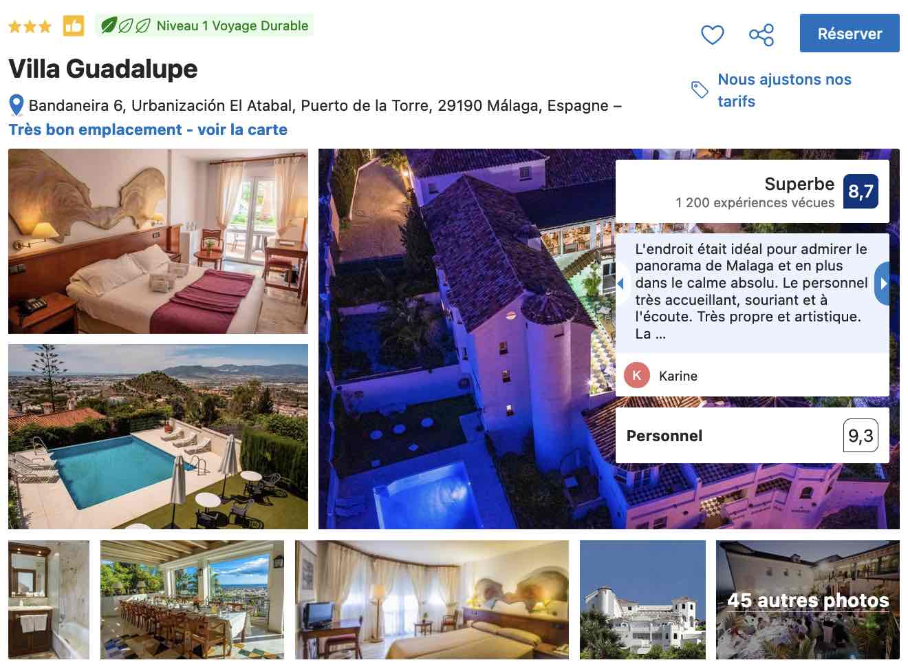 Si vous cherchez le dépaysement et le calme, sachez qu’à seulement 5 kilomètres de Malaga, vous trouvez par exemple la Villa Guadalupe qui propose des chambres de très bon standing ainsi qu’un parking privé pour votre véhicule à des tarifs autour d’une centaine d’euros la nuit si vous pensez à réserver à l’avance.