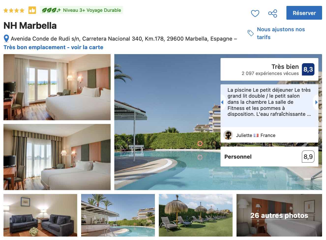 Voici à mon sens le meilleur rapport qualité-prix pour un hôtel bien situé à seulement deux kilomètres de la ville et disposant d’un parking : le NH Marbella qui a l’avantage de se trouver à moins de cinq minutes de marche du front de mer.