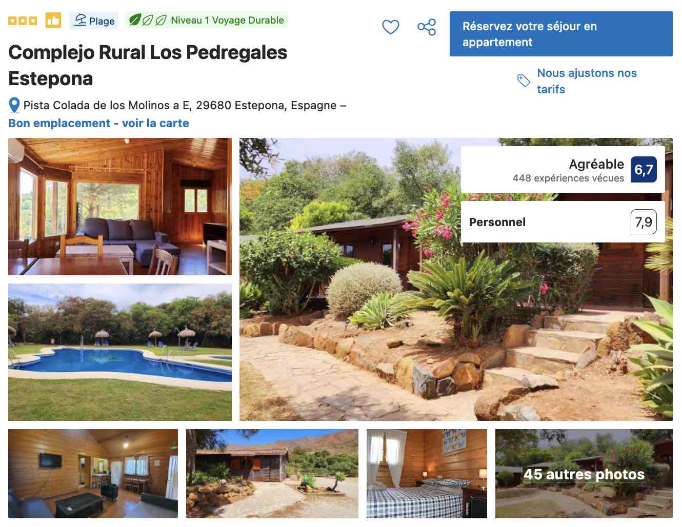 En effet, le complexe rural Los Pedregales Estepona, bien que proposant des bungalows au confort succinct, est une étape intéressante pour une nuit sur l’itinéraire de votre road trip espagnol.