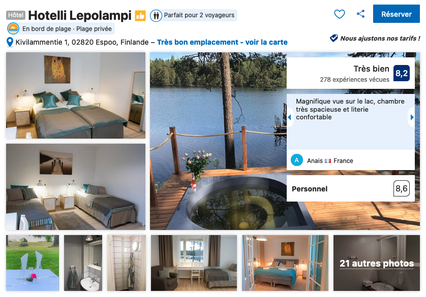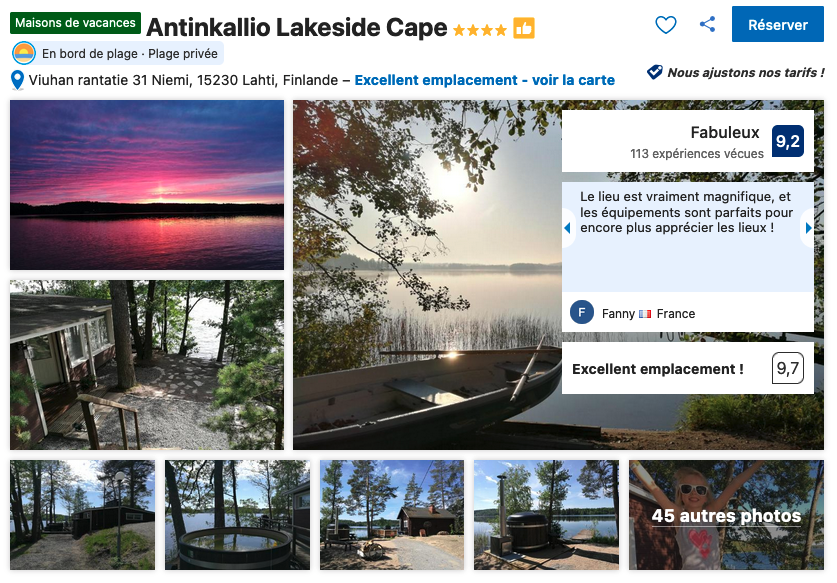 Visiblement Antinkallio Lakeside Cape n’est plus à la réservation. Dommage ça avait l’air super. Je n’ai trouvé aucun moyen pour réserver, et pas de réponse à mes mails laissé sur le site. En auriez vous un à me conseiller ?