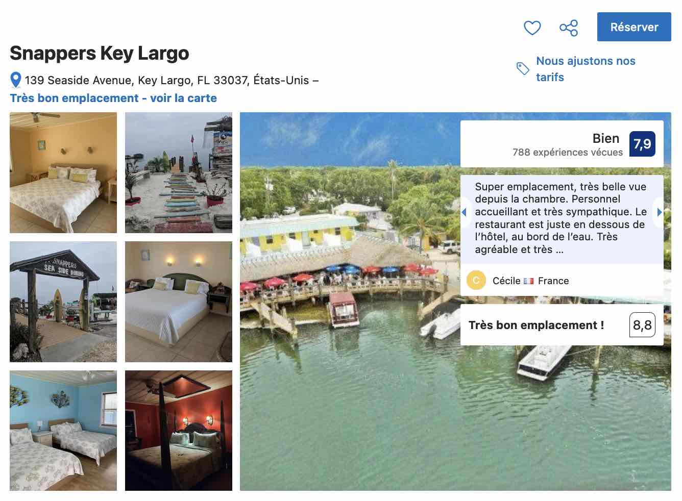 Mais avant d’en arriver là, faites une halte au Snappers Key Largo, à l’entrée des Keys. Cet hôtel testé par mes soins propose un confort sommaire, mais suffisant pour un arrêt rapide. Il a en plus l’avantage d’avoir un bon restaurant, une très belle vue sur mer, et un rapport qualité-prix intéressant.