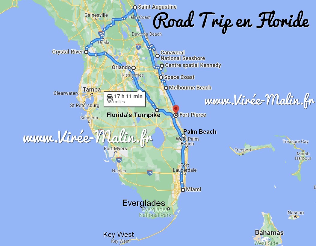 Voici ma proposition de circuit pour votre road trip en Floride. Il s’agit d’une boucle qui, selon moi, vous permettra de voir le meilleur du “Sunshine State”.