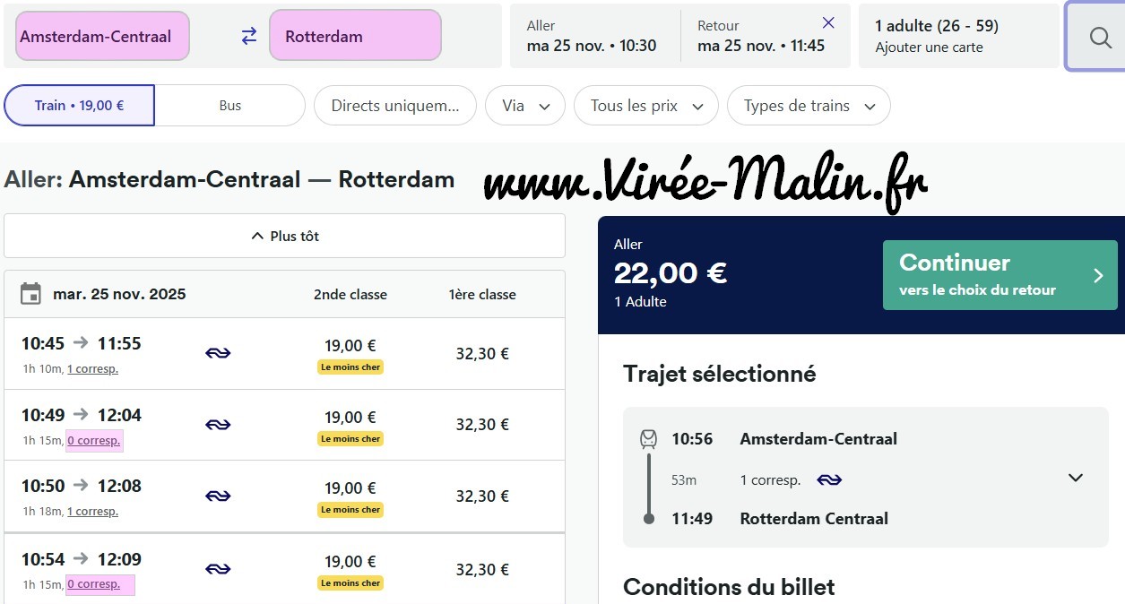 Vous êtes nombreux à venir aux Pays-Bas en prenant un vol direct vers Amsterdam, mais regardez aussi les vols depuis Rotterdam, une ville qui est aussi vraiment super sympa! D’ailleurs, pourquoi ne pas arriver à Amsterdam et repartir depuis Rotterdam, ou inversement! Pensez-y afin d’avoir plus de choix sur les dates d’arrivée ou de retour.