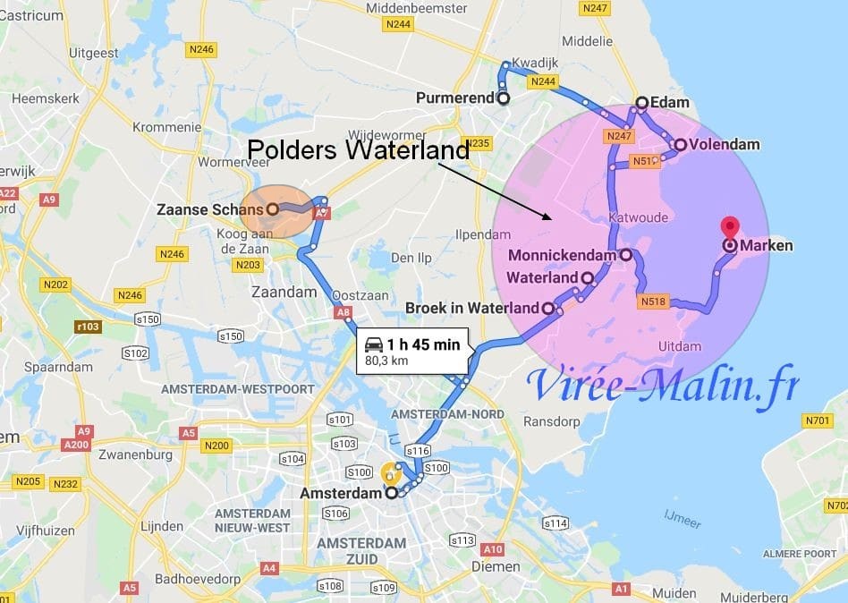 - Depuis Amsterdam : 30 minutes en voiture ou 25 minutes en train et le bus pour naviguer entre les trois villages.