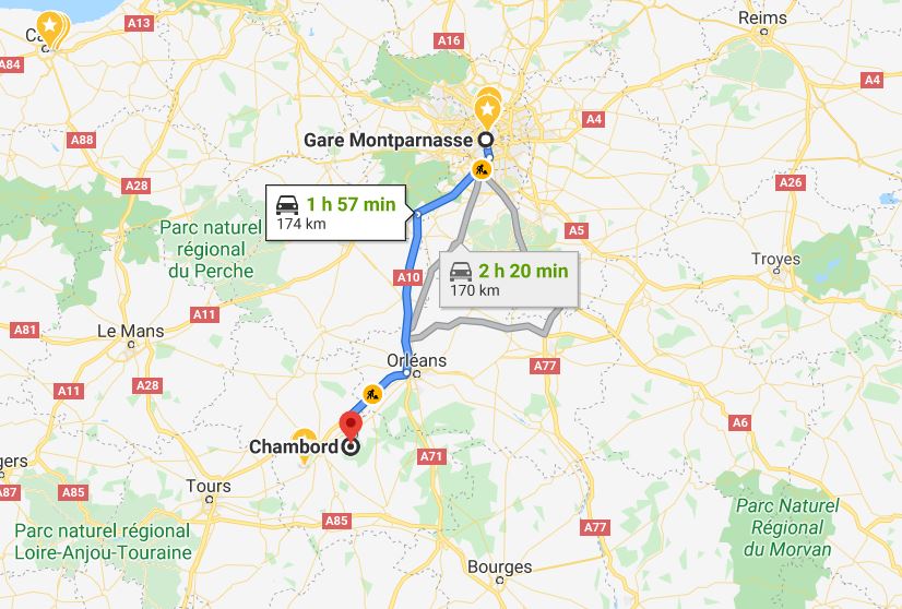 - Cliquez ici pour agrandir cette GoogleMap – Transfert navette gare de Blois vers le château de chambord :