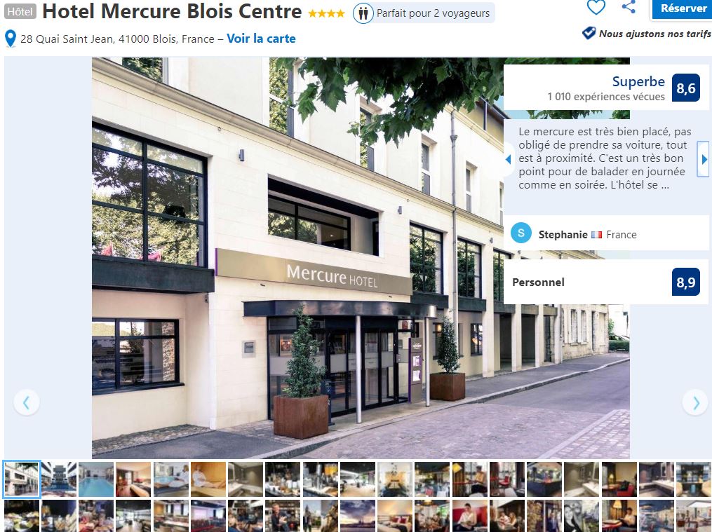 Sinon moins cher mais plus excentré du château de Chambord (qui reste proche quand même…) vous avez l’hôtel Mercure situé en centre ville de Blois, une bonne adresse bien situé :
