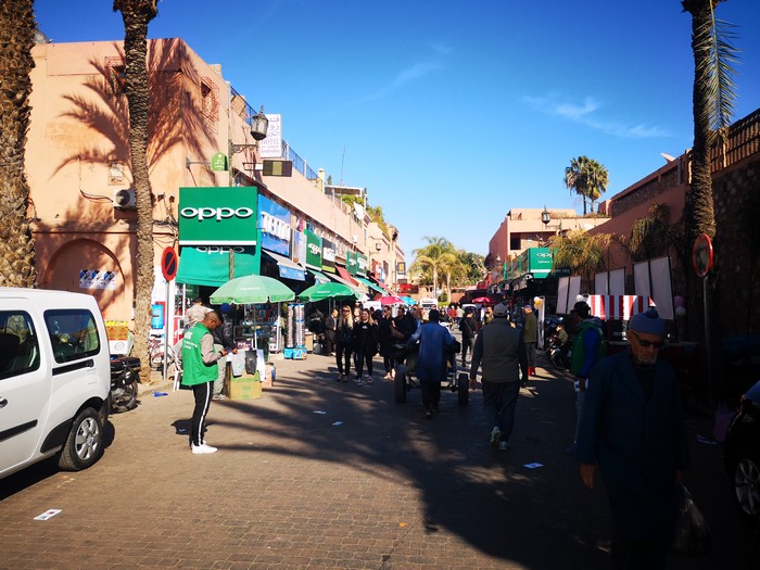 Le moyen le moins cher pour rejoindre la place Jemaa El Fna depuis l’aéroport de Marrakech est de prendre le bus 19 (comptez 20dhs soit un peu moins de 2€). La place Jemaa el Fna c’est la grande place qui se trouve en plein centre de la Medina.