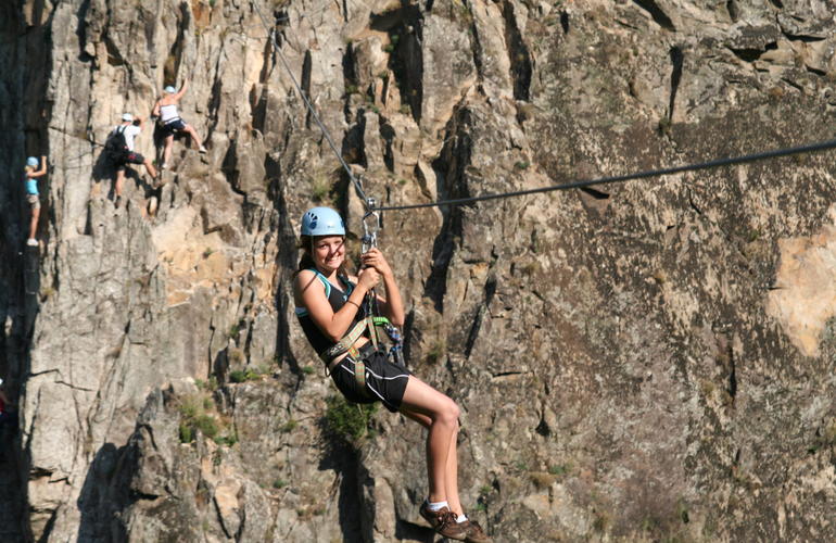 Rassurez-vous, aucun obstacle n’est obligatoire (possibilité de les contourner via des détours). Cette activité est accessible à toute personne en bonne forme physique et à partir de 5 ans pour les enfants sachant nager. Note : accès au plus grand toboggan d’Ardèche (12 m) avant le retour à la base, en franchissant le canyon par une tyrolienne de 90 m…
