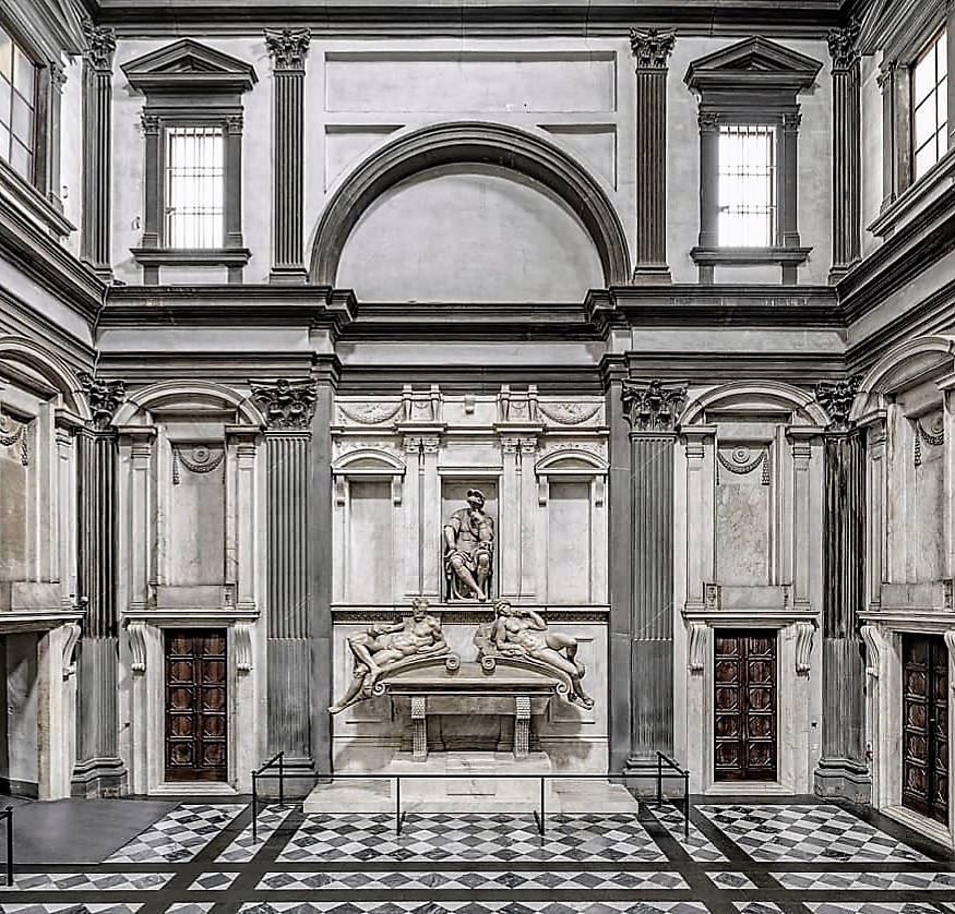 Nous admirerons les majestueuses chapelles Médicis et la sacrestia nuova, elles aussi réalisées par Michelangelo.