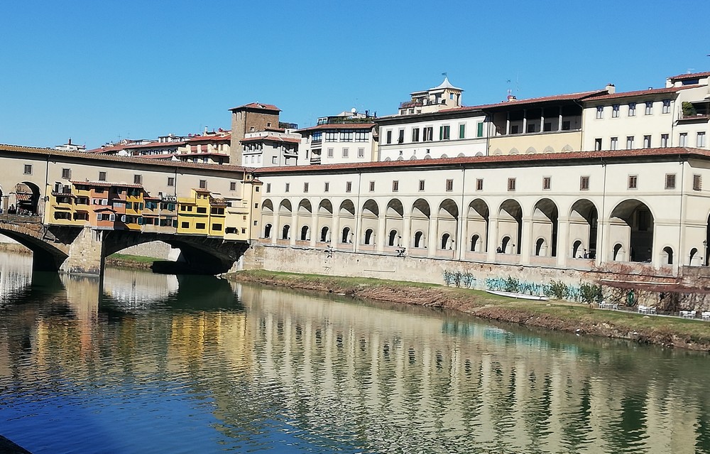 Nous longerons le corridor Vasarino qui relie de façon discrète l’ancien palais au palais Pitti, tres raffinée et ultime résidence de la famille.