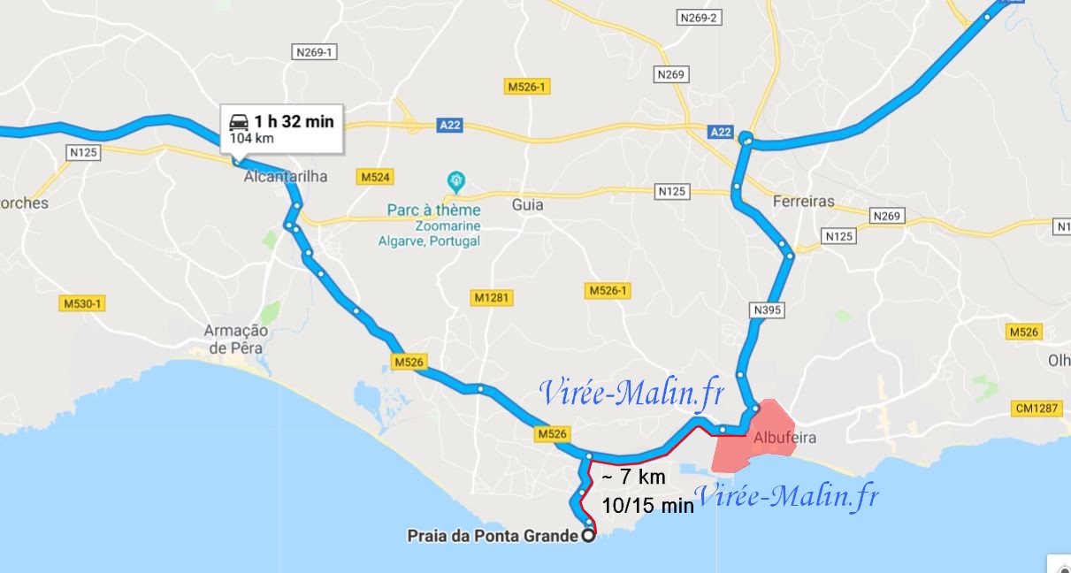 - Cliquez ici pour agrandir cette GoogleMap – Visiter la Région de l’Algarve :
