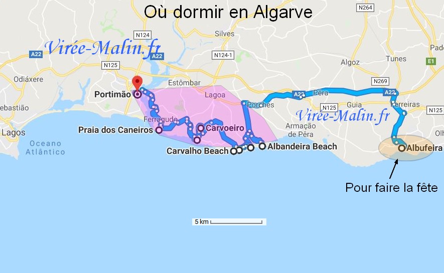 Arrêtez vous aux plages de Carvalho, les grottes de Benagil. Voilà la GoogleMap :