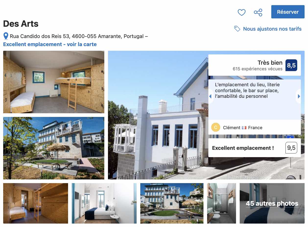 La première adresse que je vous recommande pour dormir dans le centre d’Amarante est celle de l’hôtel Des Arts. Ici, pour une chambre double avec petits déjeuners compris à partir de 80 euros la nuit, vous logez en plein cœur de la vieille ville. Vous ne pouvez pas être mieux placé pour découvrir la destination et tout faire à pied.