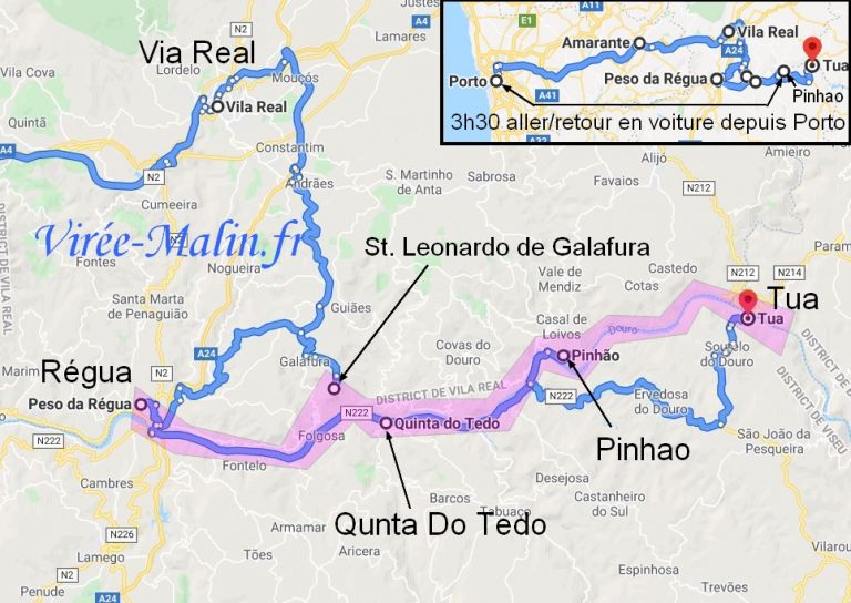 Je vous conseille de lire mon article « visiter la Vallée du Douro » qui est très complet et qui vous donnera de nombreuses informations! Voilà une nouvelle carte que j’ai personnalisé qui vous montre où se trouve Amarante par apport à la Vallée du Douro. Vous pouvez voir que vous êtes à moins d’une heure, il serait dommage de passer à côté!