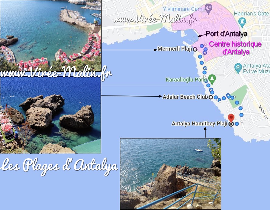 Si vous ne vous voyez pas louer une voiture à Antalya, ce que je peux comprendre, alors pensez vraiment à faire des excursions. Sinon, prenez un logement proche de la petite plage privatisée de Mermerli. En effet à Antalya, il n’y a pas de plage accessible à pied, il vous faudra prendre des transports en commun. Les seules plages accessibles sont Adalar Beach, Mermerli Plaji et Hamitbey Plajı.