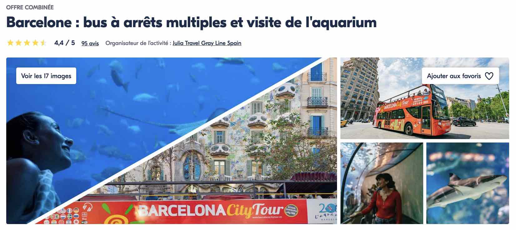 Vous pouvez d’ailleurs combiner une visite libre et à votre rythme de Barcelone avec une entrée à l’aquarium en profitant de ce ticket de bus à arrêts multiples et visite de l’aquarium.