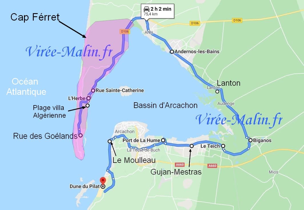 - Cliquez ici pour agrandir cette GoogleMap – Que faire au Cap Ferrêt :
