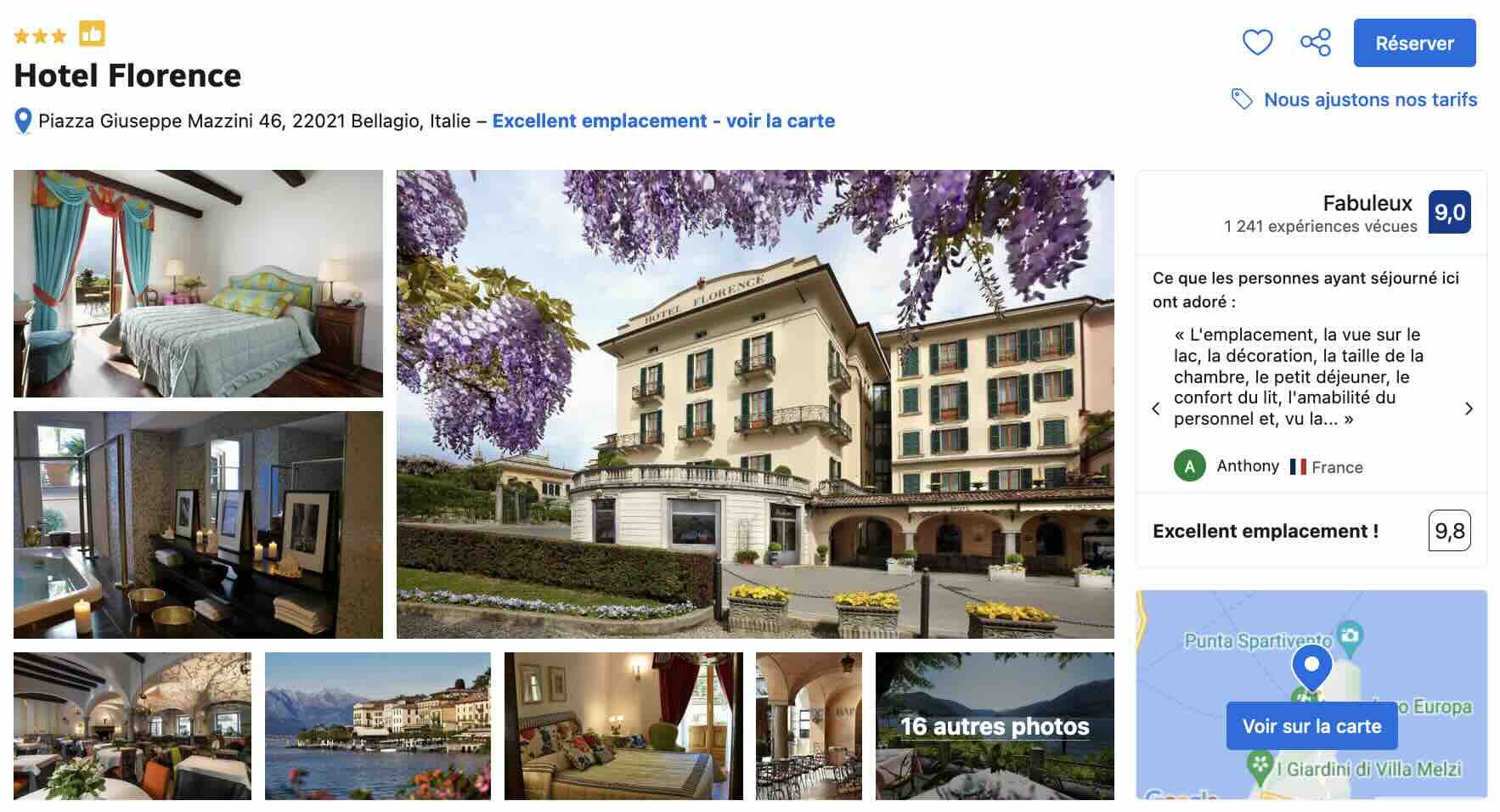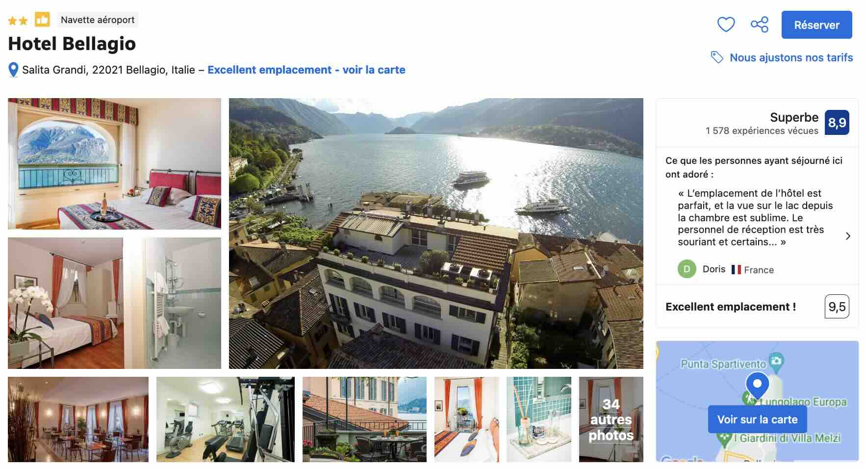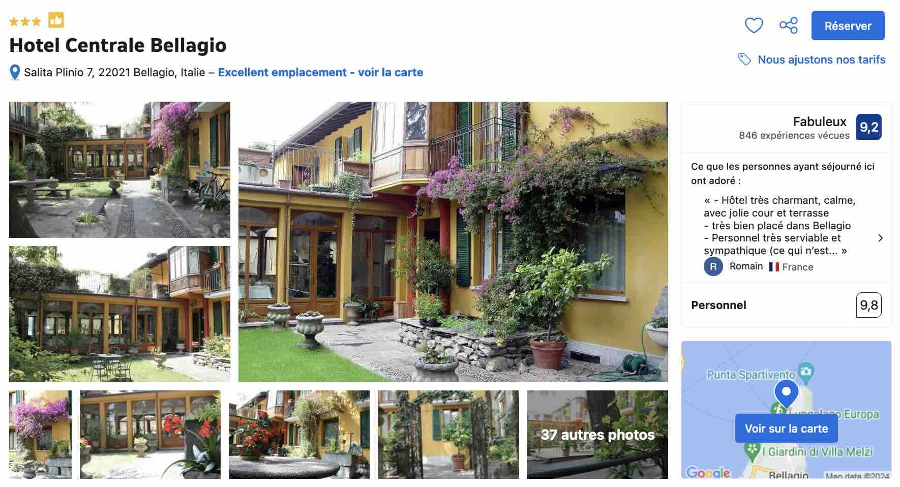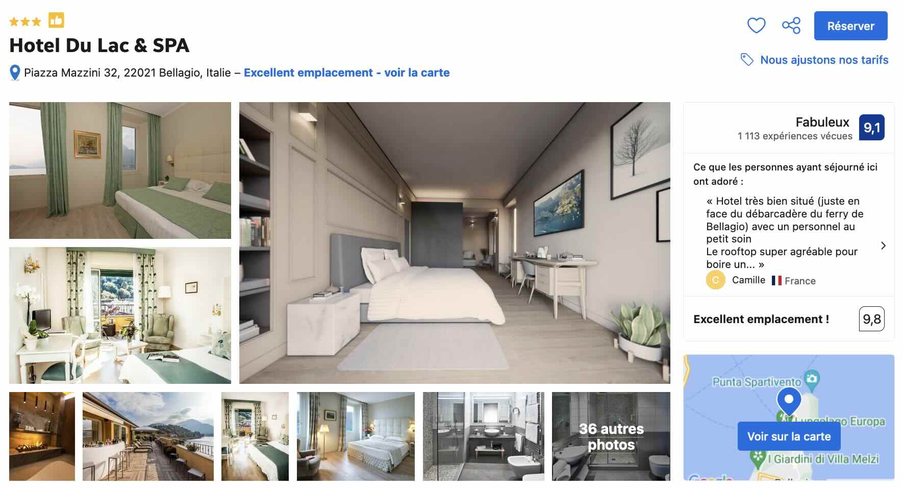 Encore un fois, comme c’est valable dans tous les villages situés sur les rives des lacs italiens, et donc du lac de Côme, vous profiterez de meilleurs tarifs si vous réservez le plus tôt possible et quand je dis le plus tôt possible, c’est 6 mois à l’avance! Faites attention et ne réservez surtout pas au dernier moment sinon il ne vous restera que des chambres à 500€/nuit…