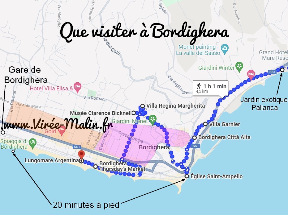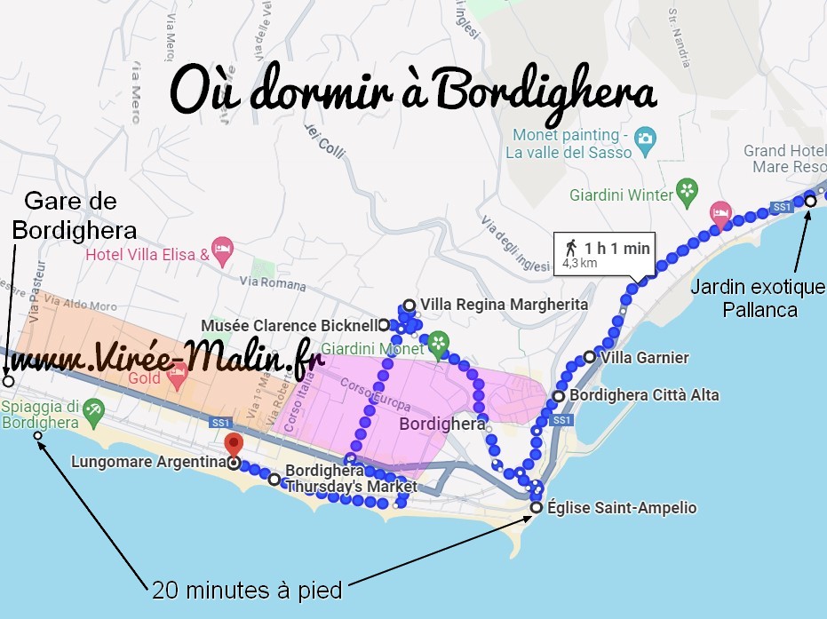 Vous voulez savoir que visiter à Bordighera et peut être savoir où dormir à Bordighera pour profiter le plus facilement possible de cette charmante petite ville Italienne ? Dans cet article je vous fais un rapide retour d’expérience à l’aide de carte que j’ai personnalisé afin que vous présenter les sites touristiques incontournables de Bordighera.