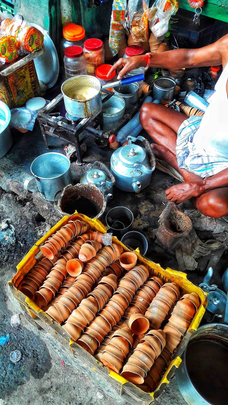 Le cha est un mélange de thé, gingembre, sucre et de lait. À calcutta il est servi dans des tasses en argiles que l’on casse dans le caniveau après utilisation. L’argile pas cuite, va alors retourner dans la rivière avec les pluies.