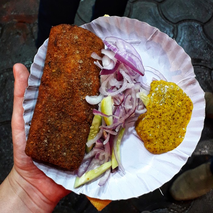 - Fish fry: version Bengali du poisson pané, fait avec des filets de ‘Bhekti’ (Barramundi) et frit dans de l’huile de moutarde.