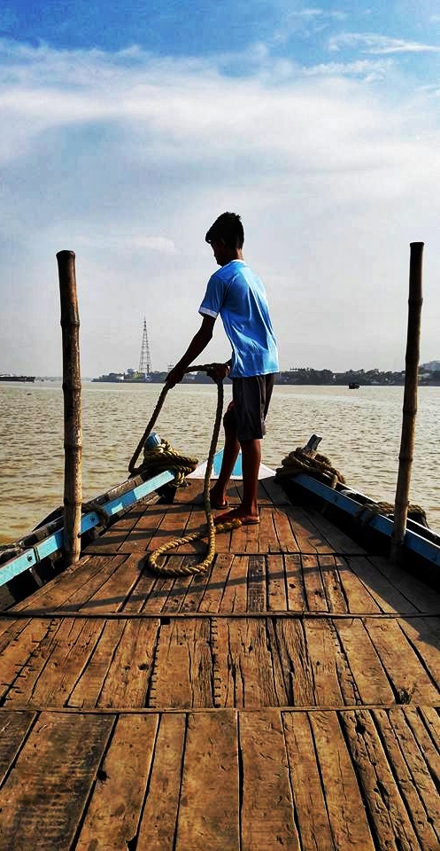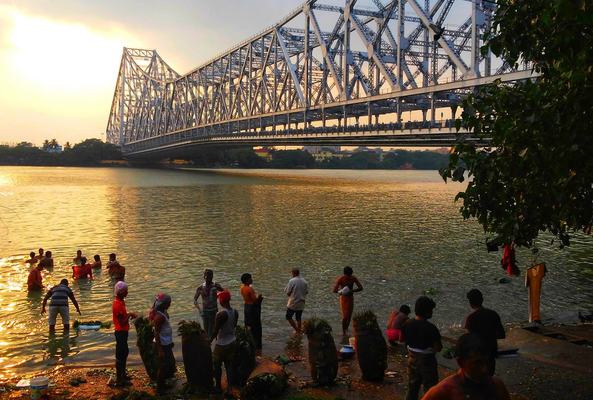 Pour traverser le fleuve Hooghly, prendre le ferry aux nombreux ghats (quais). Moyens rigolo pour voir les berges du ganges, le pont de Howrah et le nouveau pont. Des jeunes s’amusent à sauter du haut des bateaux pendant les traversées.