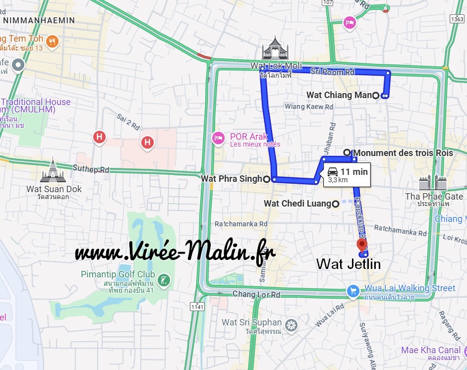 - Voilà le plan de route: GoogleMap – Visite des temples de Chiang Mai.