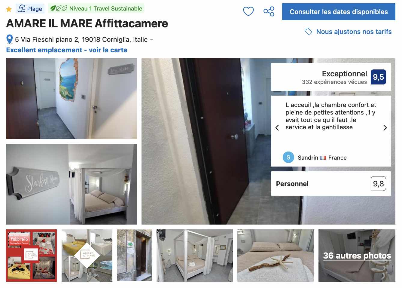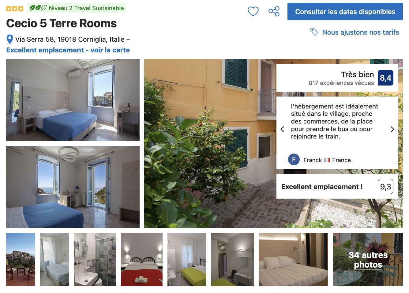 Pour épargner votre budget, je vous recommande en premier lieu la Cecio 5 Terres, une maison d’hôtes située à 3 minutes de marche du cœur historique et qui représente une bonne alternative pour son rapport qualité-prix et sa proximité avec le centre du village.