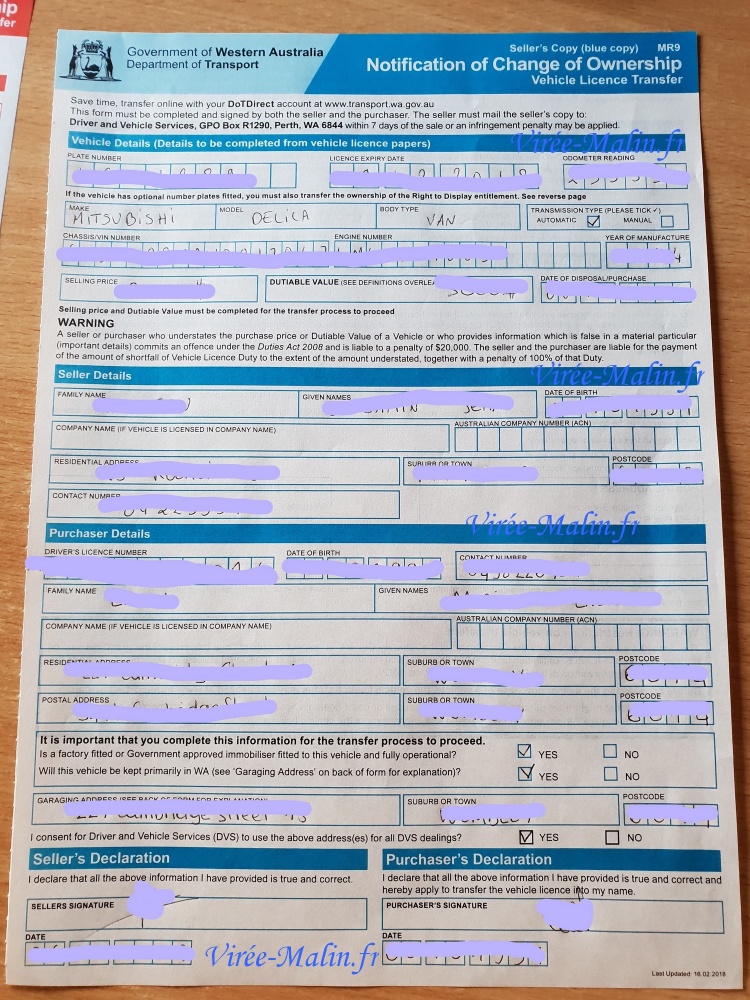 Le Western Australia WA est l’un des rares État ne nécessitant pas de contrôle technique (encore un point positif). De plus, vous pourrez renouveler la Rego en ligne (https://online.transport.wa.gov.au), il vous suffira d’entrer votre plaque d’immatriculation. Voilà pourquoi, acheter en WA est très pratique.