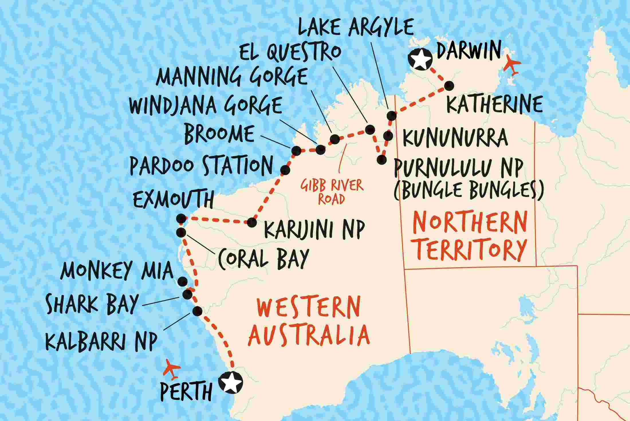 - 2) Itinéraire proposé de Perth (WA) à Darwin (NT)