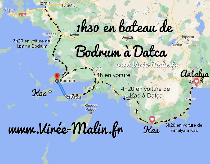 Si vous visiter Bodrum et que vous comptez vous rendre à Datça c’est vraiment une façon très sympa de se rendre à Datca. La traversée dure à peu près 1h30, donc c’est assez rapide. Il y a de nombreux départ chaque jour entre 9h et 18h.