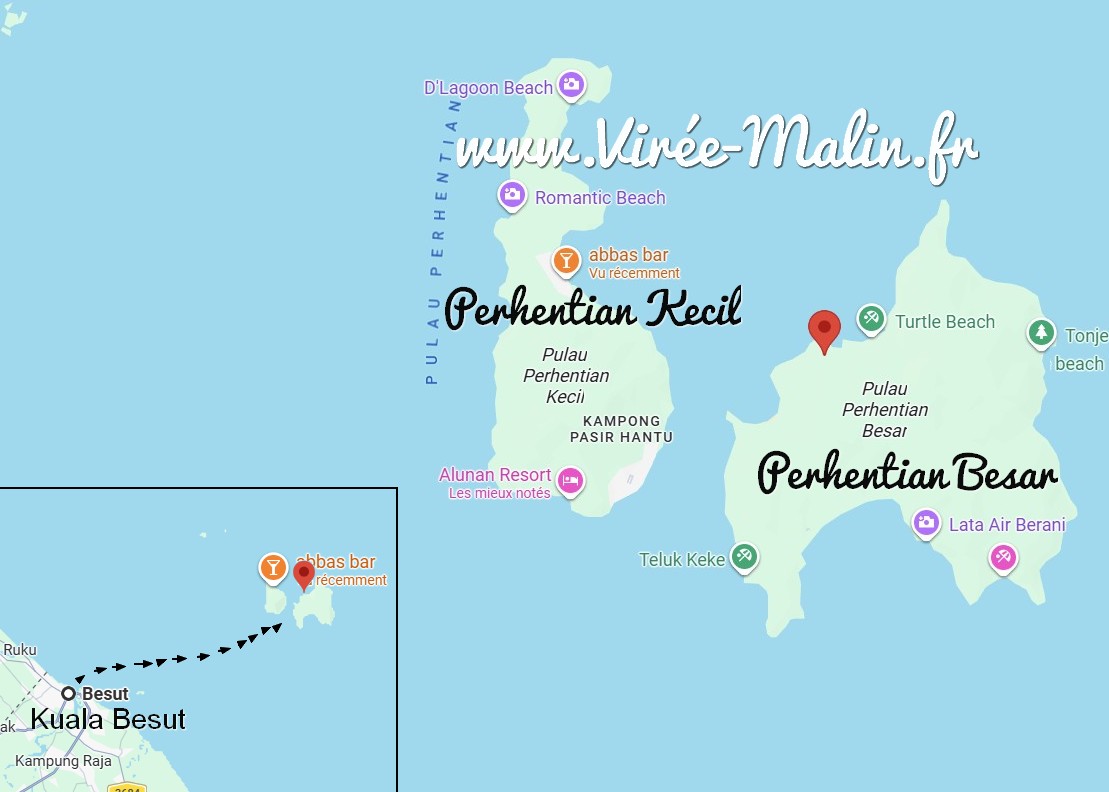 Si vous regardez la carte de la Malaisie, direction la côte est, côté mer de Chine méridionale. C’est là, au large de l’État du Terengganu, que se trouvent les Îles Perhentian. Deux îles principales posées sur une eau presque irréelle, à une vingtaine de kilomètres du continent !