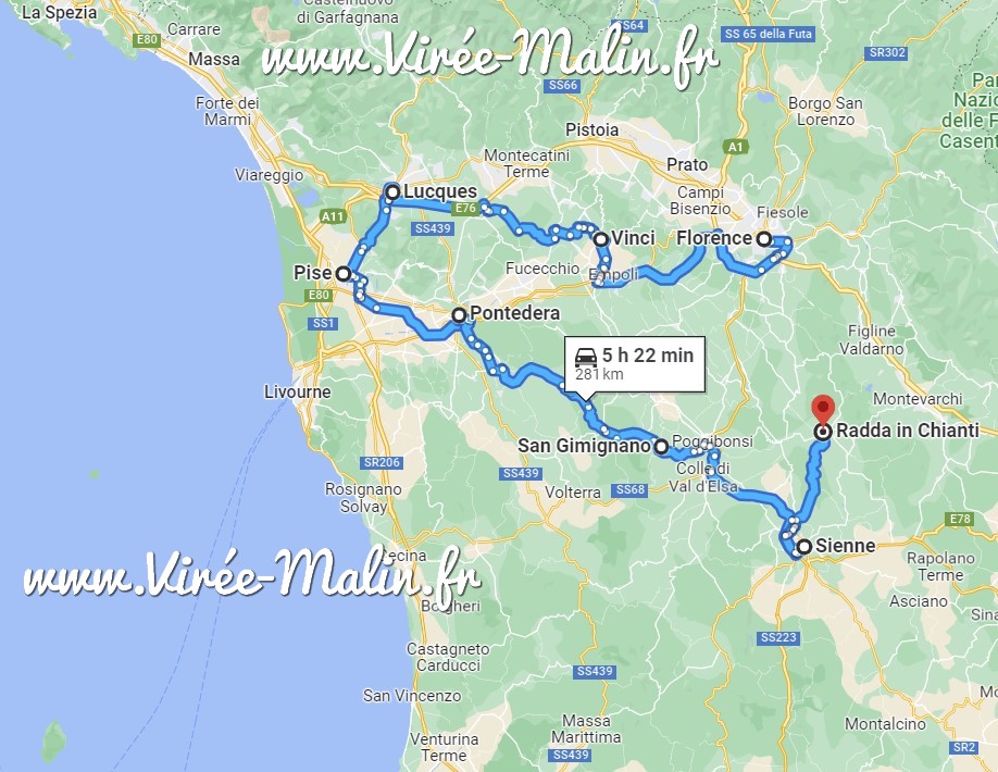 Voilà un autre circuit à suivre en Toscane qui vous permettra d’avoir une bonne base (à modifier bien sûr selon la durée de votre séjour).