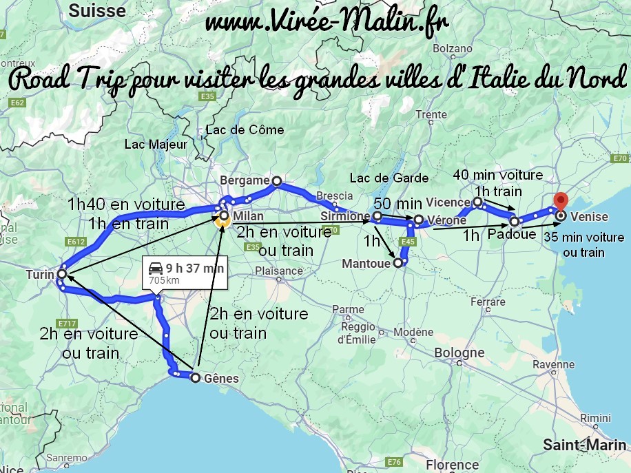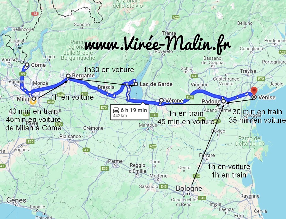 Voilà un exemple d’itinéraire pour visiter l’Italie de la région Vénitienne :