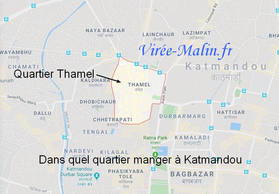 - Cliquez ici pour agrandir cette GoogleMap – Où manger à Katmandou :