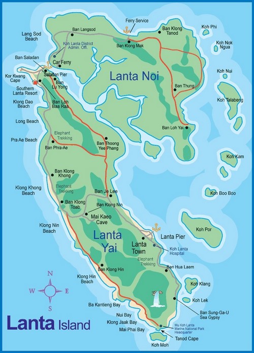 Pour info, vous allez arriver par le port de Saladan (sur le plan Googlemap ci-dessous, le nom c’est « Ko Lanta Diving Center », tout au Nord). Si vous arrivez de Krabi, le ferry accoste au nord de Lanta Noi, et il faut passer le pont pour rejoindre Lanta Yai.