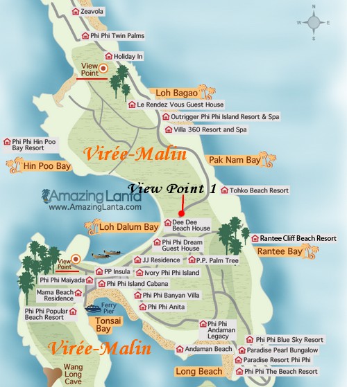 Du village de Tonsai, suivre les panneaux « Tsunami Evacuation Route », puis les panneaux « Viewpoint 1 ».