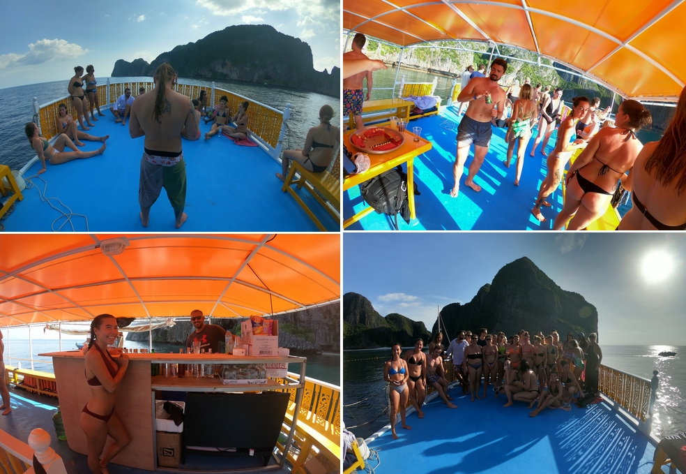 Vous trouverez de nombreux points touristiques pour réserver une sortie en mer dans un gros bateau (music, bar, food…) avec plusieurs personnes, ce qui peut être sympa aussi. Cliquez ici pour plus d’infos et ici pour lire l’article « Apéro sur un bateau à Koh Phi Phi« .