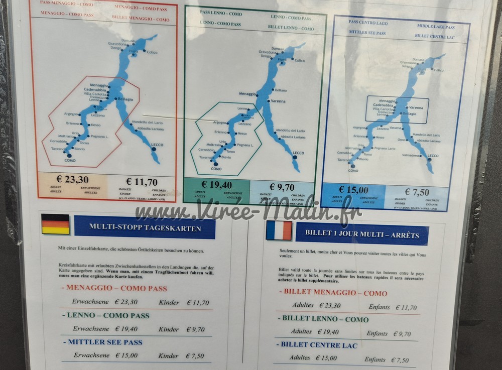 Sinon vous avez des billets pour un aller retour qui sont moins chers, comptez 5€ le billet pour faire par exemple Menaggio Varenna aller retour.
