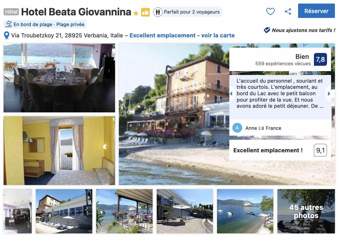 Pour une nuit à Verbania (mais encore une fois je vous conseille plutôt Stresa), je vous propose de dormir à l’hôtel Beata Giovannina qui vous offre un accès direct et une vue sur le lac Majeur, mais aussi la possibilité de rejoindre l'embarcadère facilement.