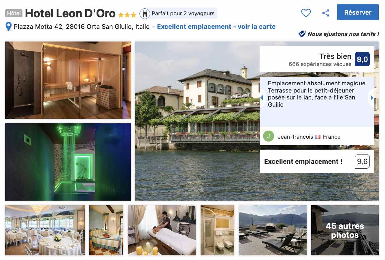 L’hôtel Leon d’Oro est justement idéalement placé à Orta San Giulia. Une adresse qui vous offre une des plus belles vues sur le lac et une position centrale dans la ville pour un peu plus d’une centaine d’euros la nuit.