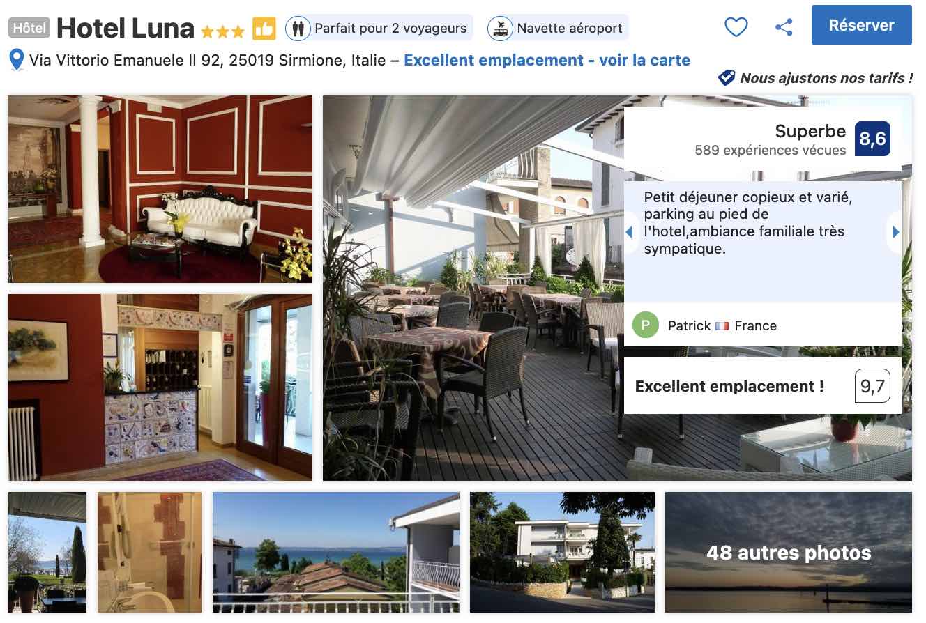 Si je dois vous recommander une adresse où dormir pour visiter Sirmione sans avoir à reprendre votre véhicule, c’est à l’Hôtel Luna que je vous propose de réserver pour tout faire à pied.