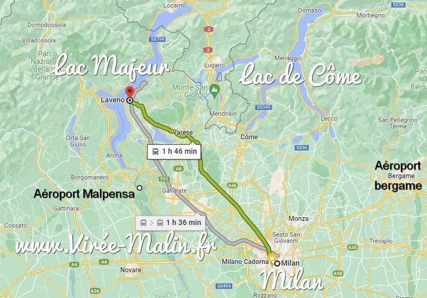 - Cliquez ici pour agrandir cette GoogleMap – Visiter les lacs d’Italie du Nord: