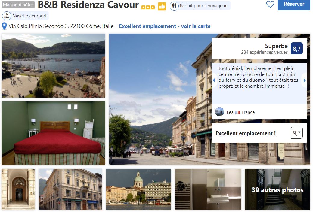 Côme reste une petite ville très plébiscité, dormir avec la vue sur le lac de Côme a un coût. Comme toujours, plus vous réserverez à l’avance plus vous aurez le choix dans les logements. En plein cœur de la petite ville de Côme vous avez la Residenza Cavour, c’est une maison d’hôtel idéalement placé.