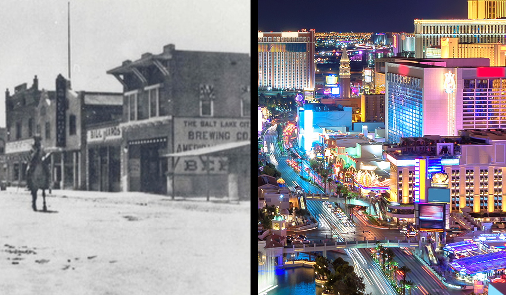 C’est vers 1855 que les choses commencent à bouger pour Las Vegas. Les fermiers mormons s’installent dans ce lieu nommé par les Espagnols « Las Vegas » signifiant « vallées fertiles », car de l’eau est présente sous les sols. Puis les fermiers quittent la zone vers 1857.