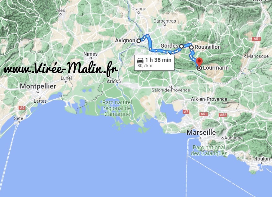 Quoiqu’il en soit, dans le Lubéron ou le Vaucluse, je conseille de dormir soit à Lourmarin, soit au Roussillon soit à Gordes donc tout dépend de votre circuit! Seulement 30 minutes de route sépare le Roussillon de Lourmarin, et 40 min entre Lourmarin et Gordes, par contre comptez 1h20 entre Avignon et Lourmarin.