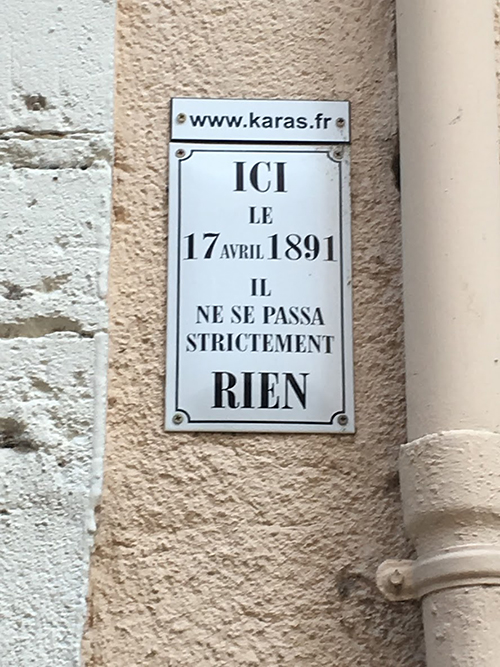 Mon autre surprise : l’humour de ce village. Attablé au Café Gaby, sur la place de L’Ormeau, je me suis occupé à lire les cartes postales du magasin de souvenir juste à côté.